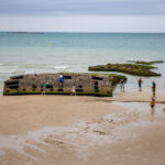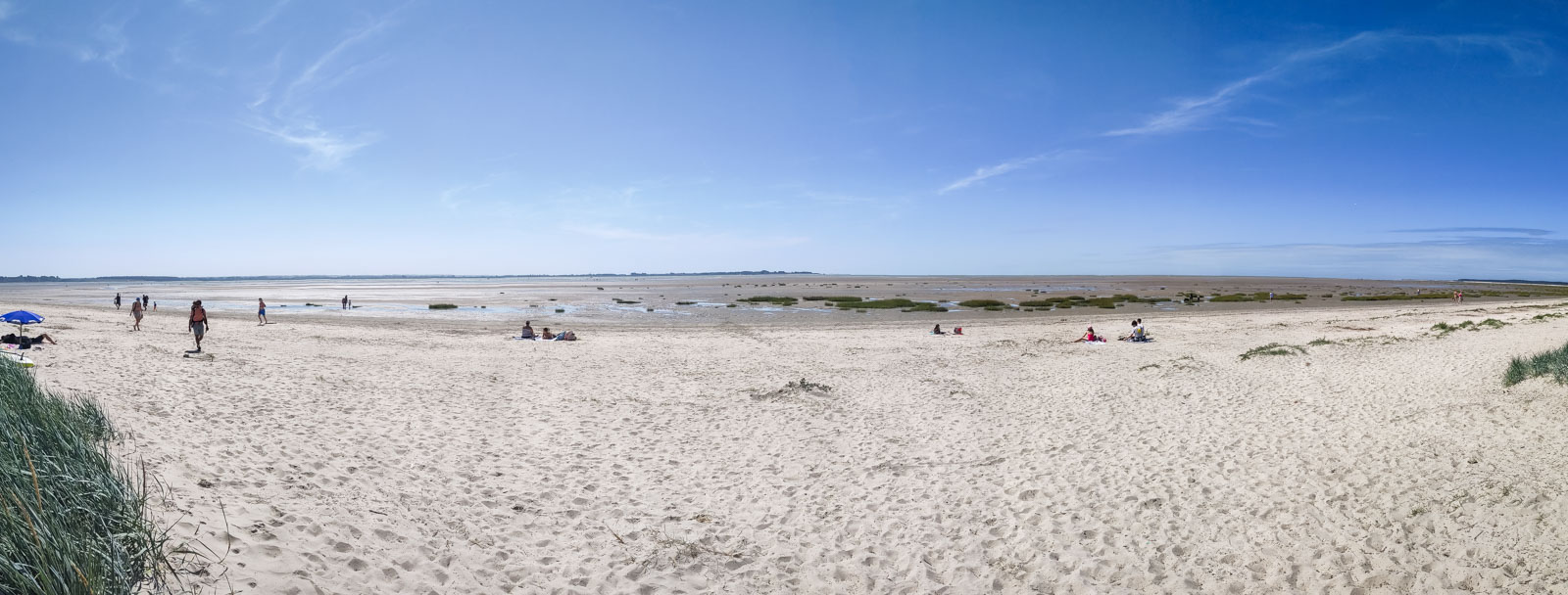 Wir peilen das bereits im Winter bereiste Cotentin an, in der Hoffnung, dass die eher rauhe Küste etwas ruhiger als die üblichen Strand-Hotspots ist. Die Anreisetage sind brütend heiß, wir nehmen kurze Tagesstrecken unter Pösslchens Reifen und landen – nach dem obligatorischen Huy – erst mal an der Somme-Mündung, wo wir einen ersten Einblick bekommen, was August an Frankreichs Küsten bedeutet. Der zentrale Stellplatz in Le Crotoy, den wir versehentlich zuerst anfahren: ein Alptraum, weiße Womowand an weißer Womowand. Eigentlich wollten wir ja sowieso auf der anderen Seite den Platz hinter den Dünen, wo es etwas entspannter ist. Aber schon recht voll … für eine erste Übernachtung aber ok, und man ist mit drei Schritten hinter den Dünen am Meer (Bild des Platzes siehe Kopfbild).