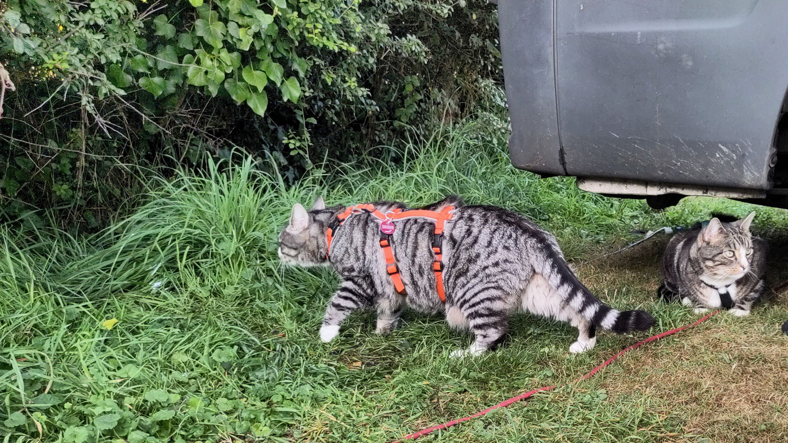 Die Temperaturen haben sich zum Glück auch etwas reguliert, so dass wir immerhin nicht den Stress haben, wegen der Katers unbedingt Schattenplätze zu benötigen (das wäre vermutlich wirklich schwierig hier oben). Der Abenteuerkater verschwindet auch prompt im Gebüsch und genießt es, aus seinem Versteck heraus die Welt zu beobachten. Die stundenlange Suche bis in die Nacht, als er aus welchen Gründen auch immer nicht zum Thunfischdosenklang nach Hause wollte oder konnte und wir ihn bei Vollmond dann aus der gegenüberliegenden Wiese pflückten, ist eine andere Geschichte …