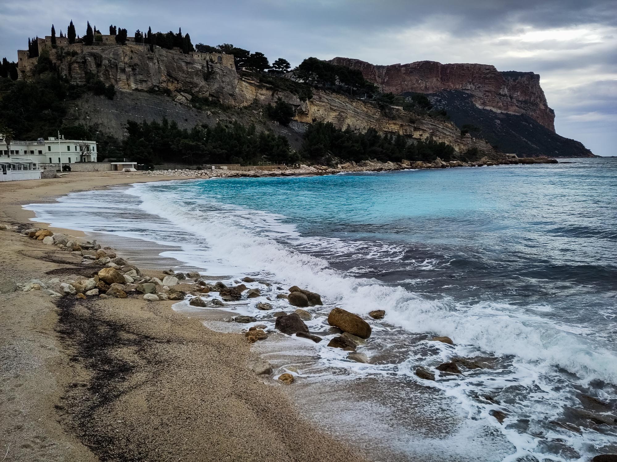 Weil wir uns letztes Mal direkt nach Osten gewandt hatten, gingen Cassis, Marseille und die Route de Crêtes mal eben unter, alles Ziele, die sich von La Ciotat prima erreichen lassen, mit Fahrrad oder der Küstenbahn Zou! Wettermäßig begrüßte uns die Küste etwas durchwachsener als 2025, kühler und zwischendurch Regenschauer, dazu ein kühler Wind, aber alles in allem ließ es sich aushalten (und in Deutschland klirrender Winter). Nach unserer Ankunft am Samstag machten wir uns gleich am Sonntag nach Marseille auf, um nicht Montag und/oder Dienstag vor geschlossenen Museen zu stehen, eine gute Entscheidung. Natürlich konnten wir nur ein kleines, leicht verregnetes Häppchen der Stadt mitnehmen, gerne hätte ich z.B. noch die Wohnanlagen von Le Corbusier gesehen, aber einen kleinen Eindruck haben wir dann doch bekommen. Und: das prächtige Musée des Beaux Arts kostet nicht mal Eintritt!