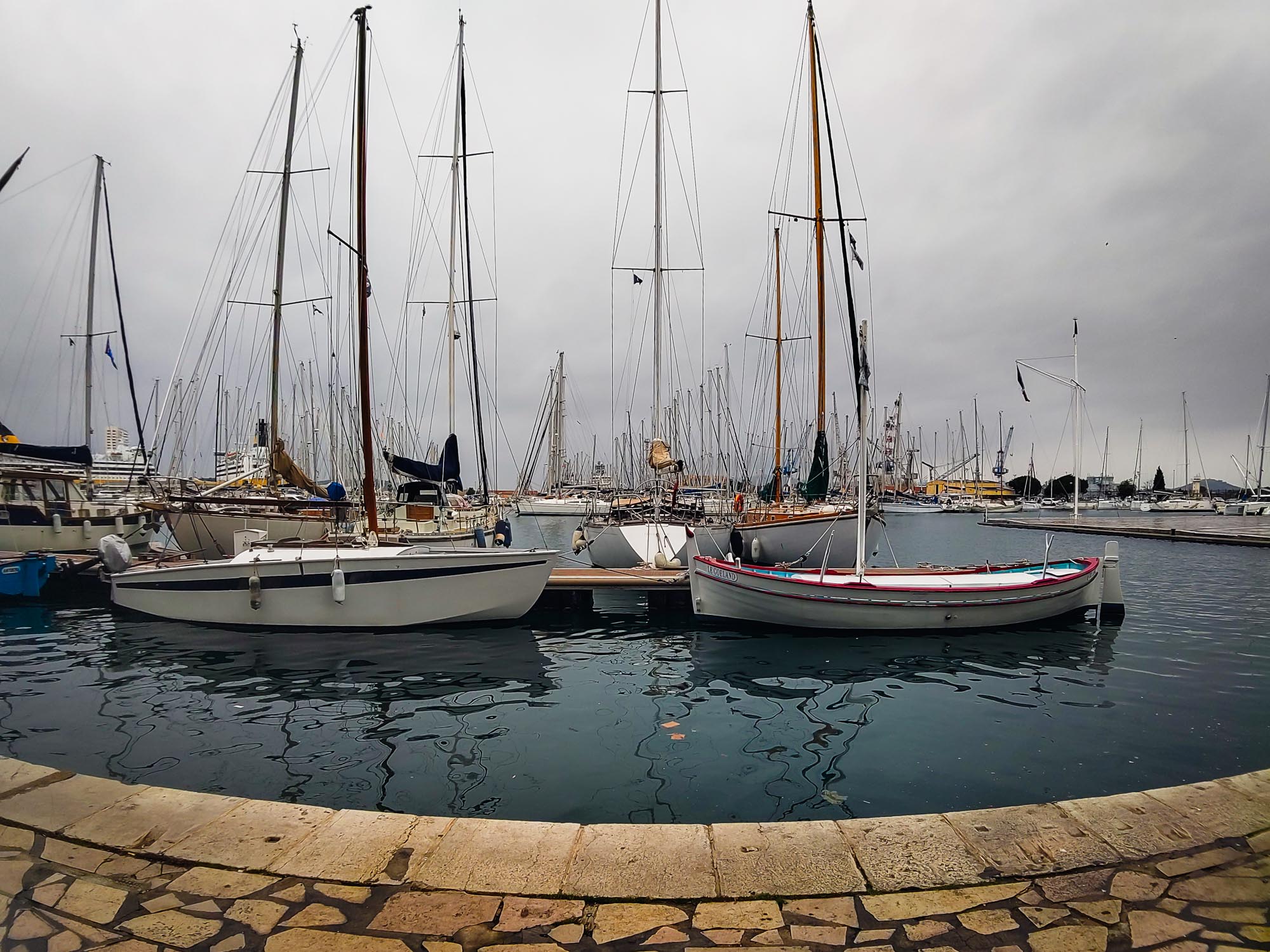Aber St. Tropez … nun ja. Wir mögen ja die winterliche Ruhe, aber dieser Ort ist einfach nur tot. Alle Museen und die Citatelle geschlossen, Gastro (hätten wir eh nicht genutzt weil überteuert) und übertriebene Luxusläden (dito) geschlossen, nur ein kleiner Markt gab etwas Hoffnung. Es goss den Rest des Tages in Strömen und nach dem Kauf einiger (überteuerter) Lebensmittel zogen wir so bald wie möglch weiter ins finale Zielgebiet, wieder Cagnes-sur-Mer zwischen Antibes und Nizza. Nicht bevor der Herr, der unbedingt nach St. Tropez wollte, unnötigerweise noch von einer Schlingpflanze am Radweg vom Fahrrad geholt wurde. Zum Glück mit ein paar Schrammen glimpflich abgegangen.