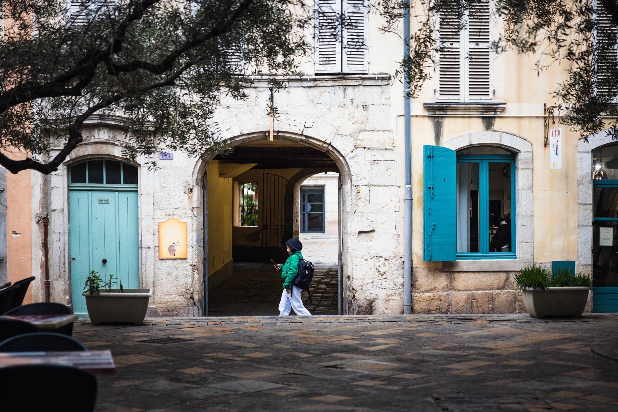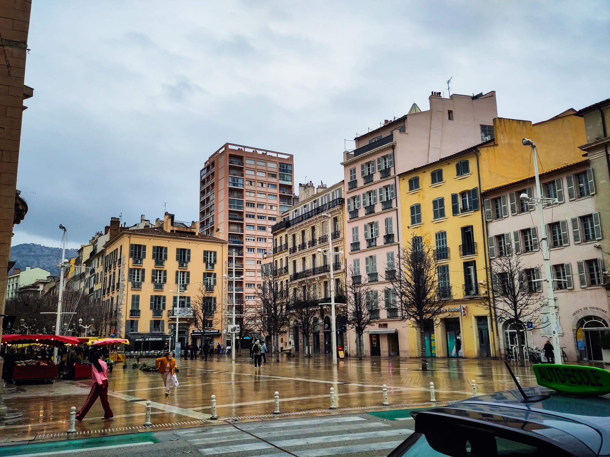 Nach Toulon am nächsten, verregneten Tag war es dann nur ein Katzensprung, im Sommer hätten wir es bequem mit dem Fahrrad geschafft. Auch hier versöhnt ein schönes Kunstmuseum mit riesiger Bibliothek (und eine nette Buchhandlung am Hafen) mit dem nassen Wetter. Die Stadt ist nicht ganz so prächtig wie Marseille, hat aber eine interessante Nachkriegsarchitektur und man merkt die Universitätsstadt – viele junge Leute und überall Street Art. Am Ende sitzen wir bei leichtem Nieselregen draußen vor einer Sandwichbude und genießen die städtische Atmosphäre.